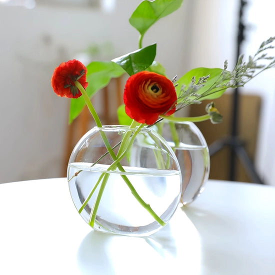 Soliflore Sphérique Transparent sur Socle en Bois - Vignette | Vase Cute