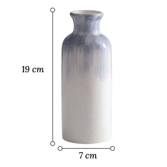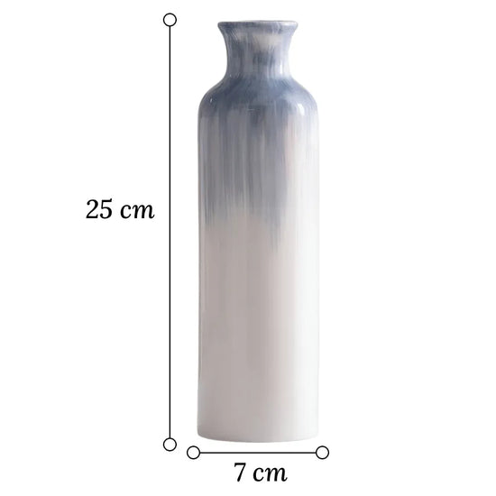 Sa forme longiligne et son col légèrement rétréci donnent du volume visuel dans la pièce, sans surcharger l’espace. Son dégradé ajoute un point focal frais et dynamique.